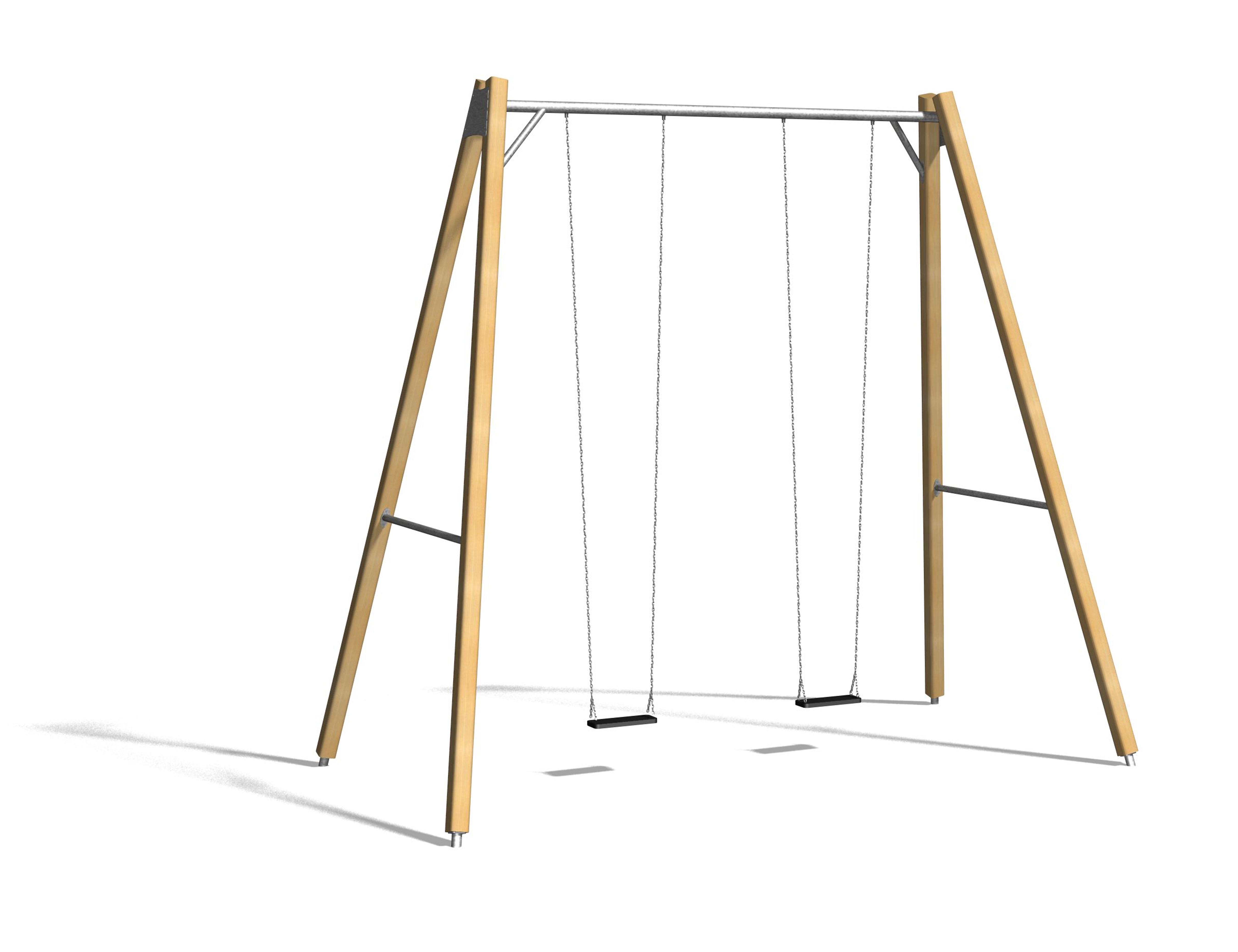 Armature en bois-métal. Suspension bimbo sans graissage. Siège de sécurité avec noyau métallique. En bois de sapin blanc imprégné ou métal zingué.