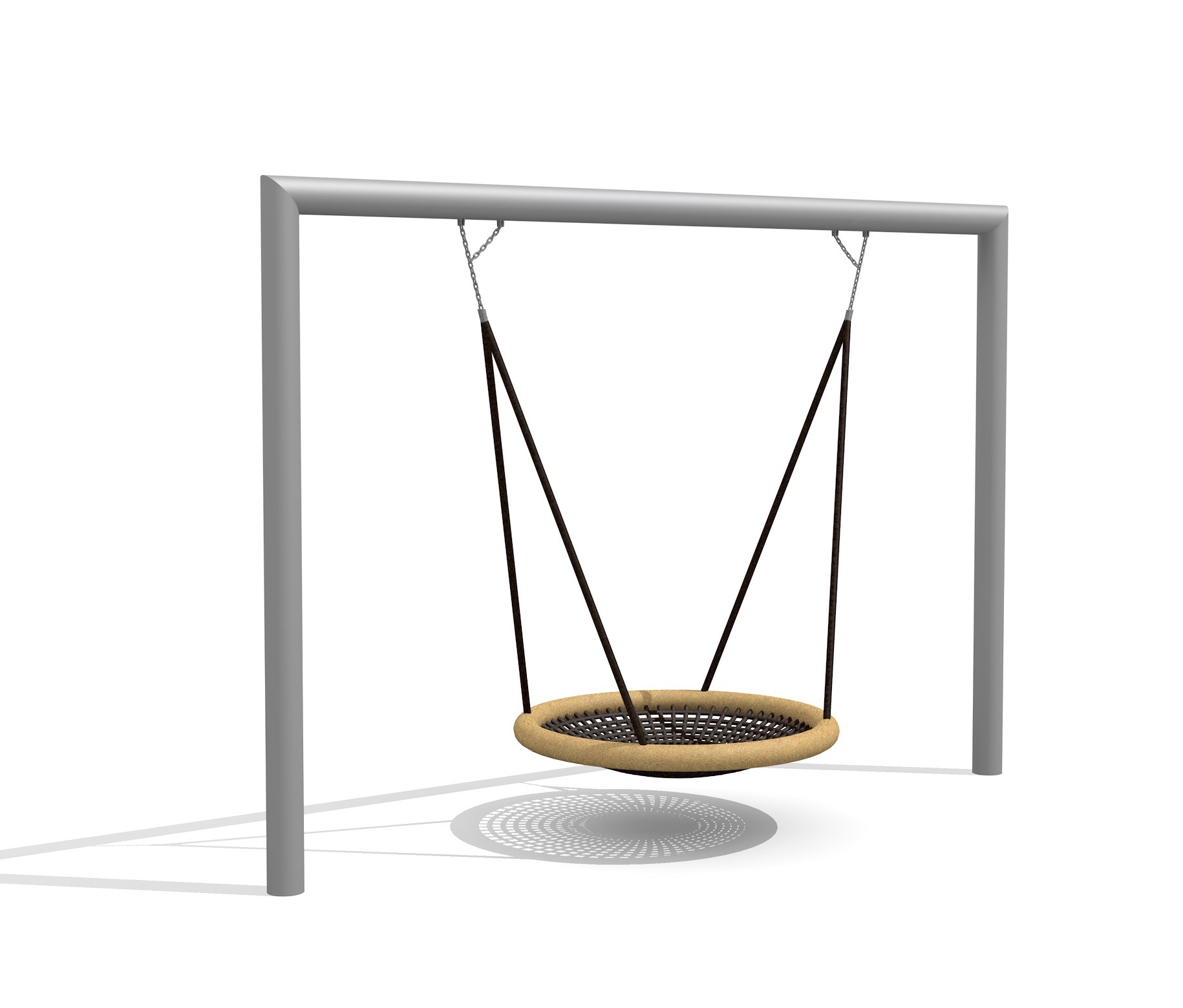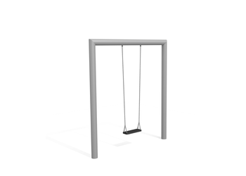 Une balançoire avec armature en métal sans fioritures. Méthode de construction massive avec armature en tube de métal.
