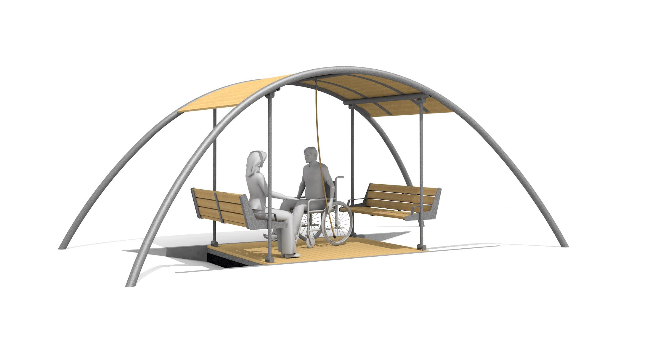 La balancelle est un lieu de repos et de quiétude. Ce n’est pas un jeu d’action. Idéale pour les handicapés et les personnes âgées, elle est un lieu de rencontres. Son balancement est similaire à une chaise à bascule. Entrée sans seuil.