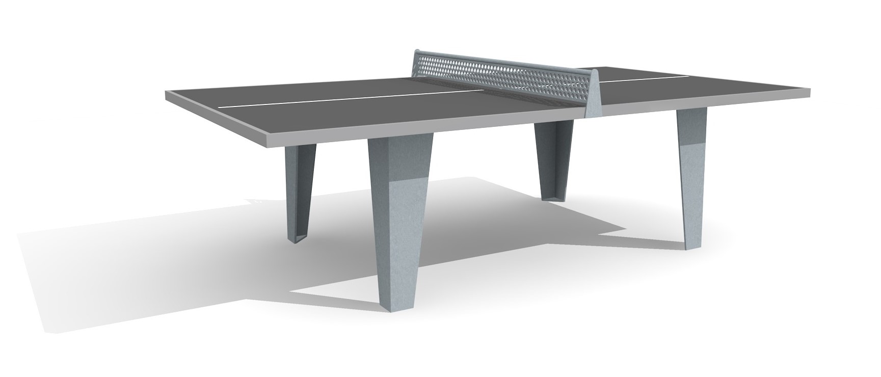 Plateaux solides en béton polymère avec un cadre aluminium, épaisseur 45 mm. Marquage inclus. Les dessus sont disponibles en anthracite. Socle en métal zinquée.