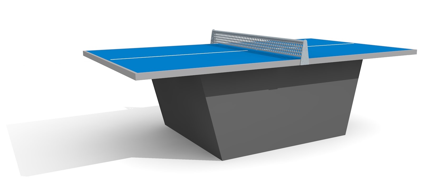 Plateaux solides en béton polymère avec un cadre aluminium, épaisseur 45 mm. Marquage inclus. Les dessus sont disponibles en bleu. Armature en acier anthracite.