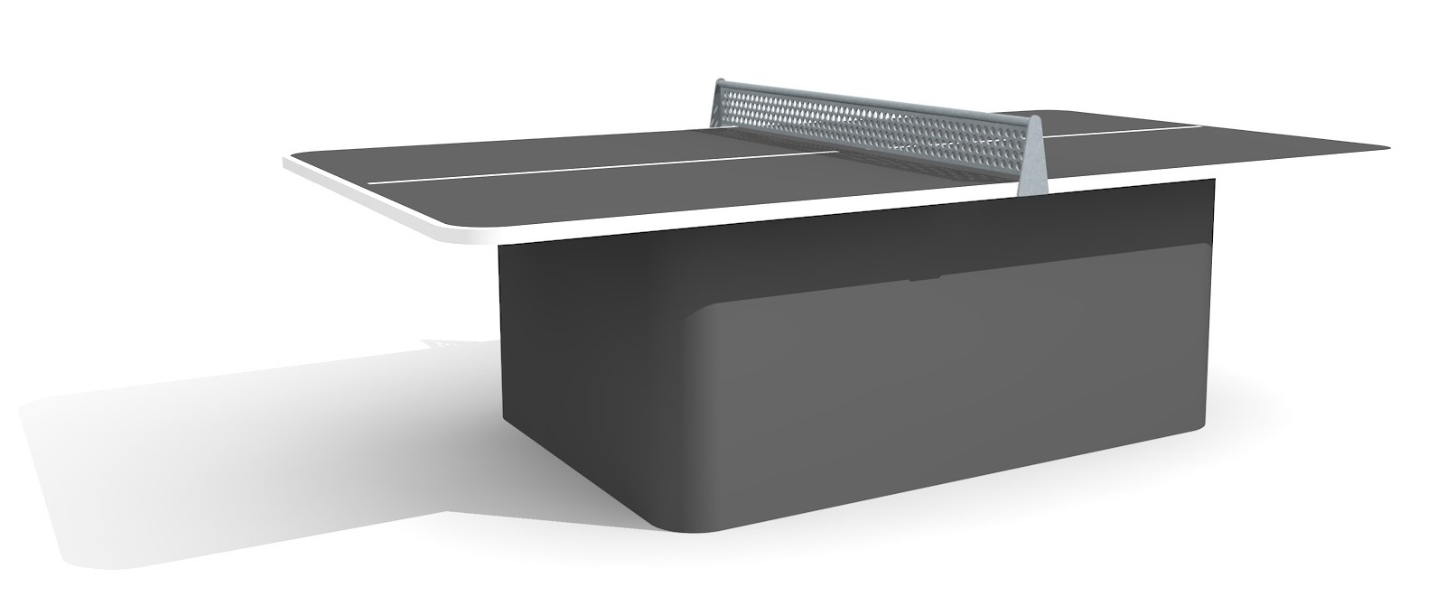 Plateaux arrondis solides en béton polymère avec un cadre synthétique, épaisseur 30 mm. Marquage inclus. Les dessus sont disponibles en anthracite. Armature en acier anthracite.