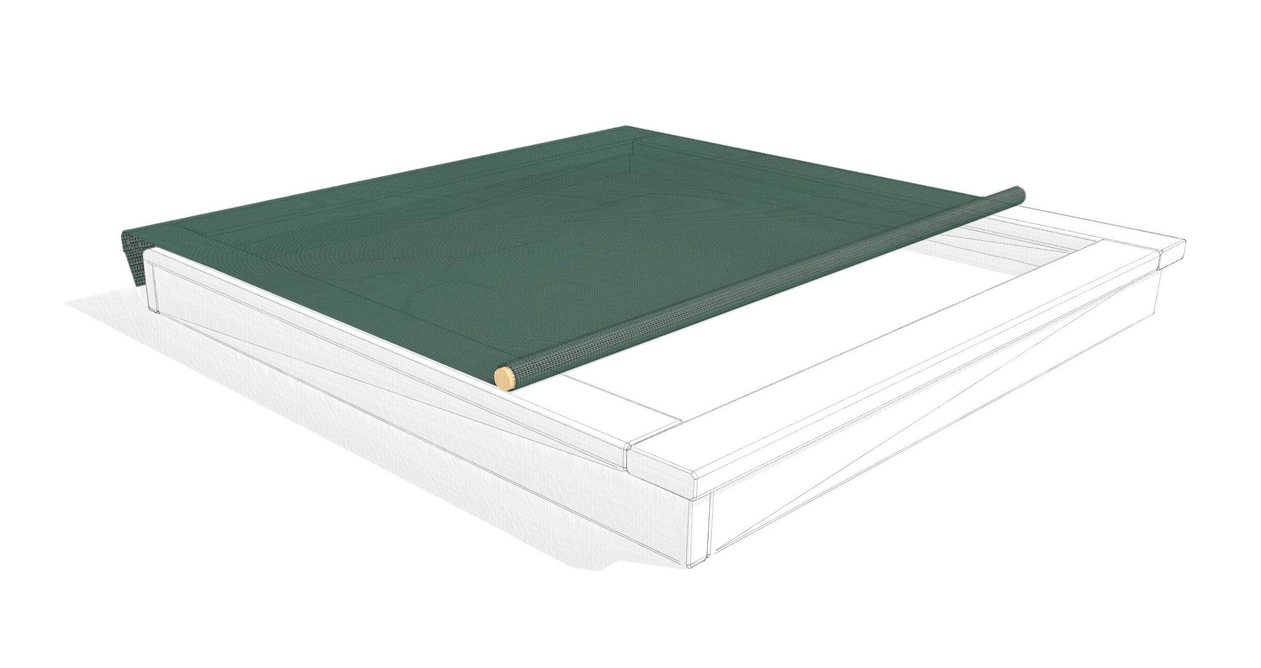 Bâche verte avec barre d'enroul. pour 2.5 x 2.5 m
