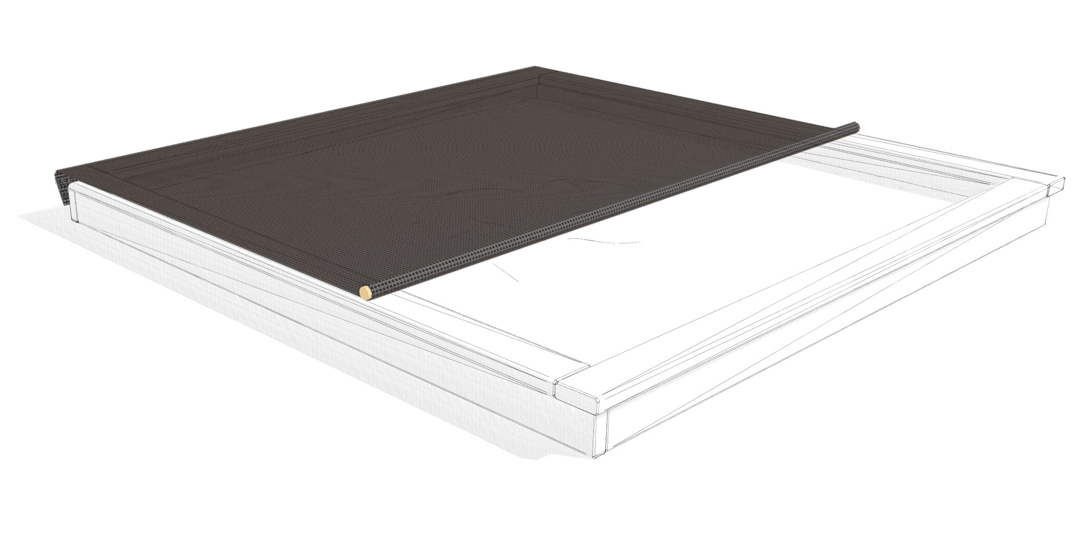 Dans la mesure du possible, les bacs à sable devraient être couverts. Une barre permet de la rouler et de la dérouler facilement. Il est également possible de tendre la bâche avec un élastique de caoutchouc fixé sur des rouleaux de fixation.