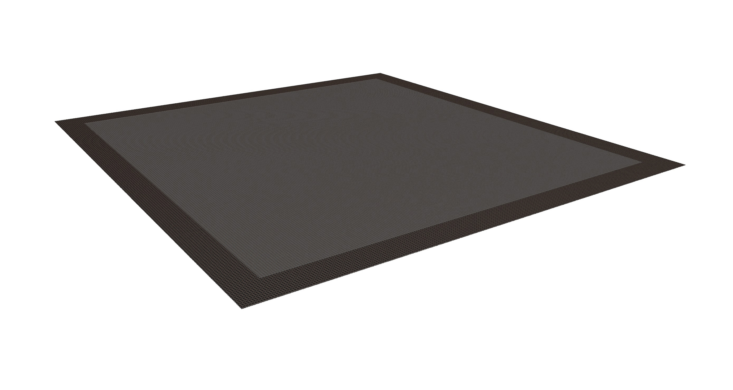 Bâche perméable à l’air en toile polyéthylène traitée anti-UV, avec chaîne en métal cousue dans l’ourlet renforcé. Couleur noir.