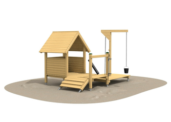 Maisonnette à sable très apréciée des petits. Chacune avec terassse, banquette, grue et déversoir, ainsi qu’une rampe d’accès très pratique. Peuvent-être combinées avec des installation d’eau.
