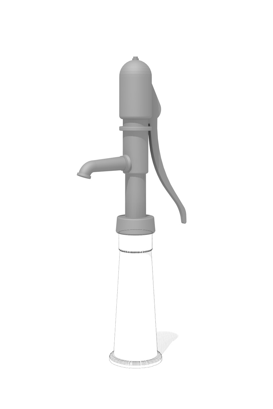 Exécution en fonte moulée sous pression, laquée argentée. Les dégâts peuvent causer une rouille superficielle, recouvrable avec de la peinture. Pour un usage fréquent, nous recommandons la pompe rotative, plus durable et robuste.