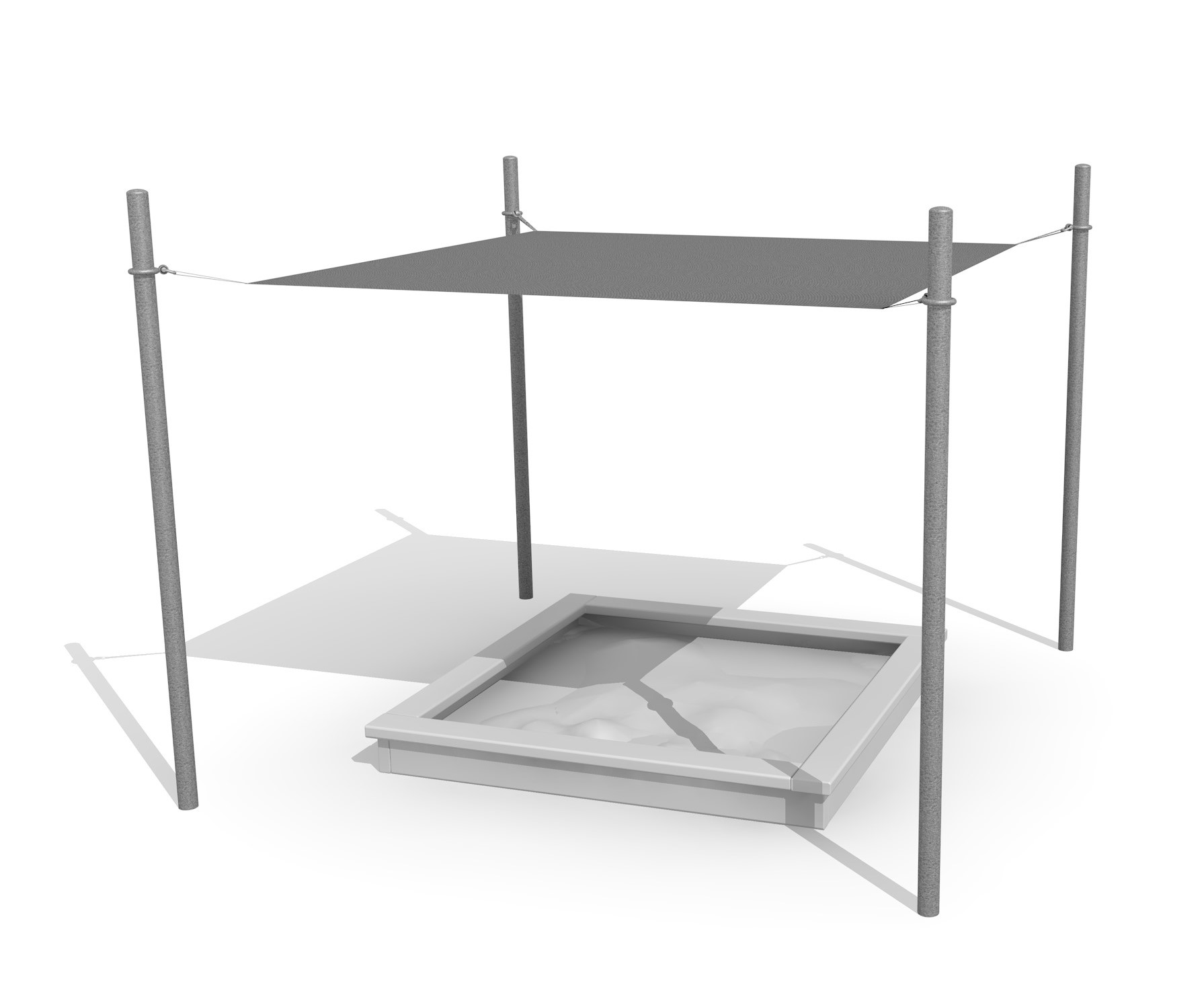 Une solution pratique pour les petits bacs à sable. La bâche peut-être remontée en cas d’utilisation.