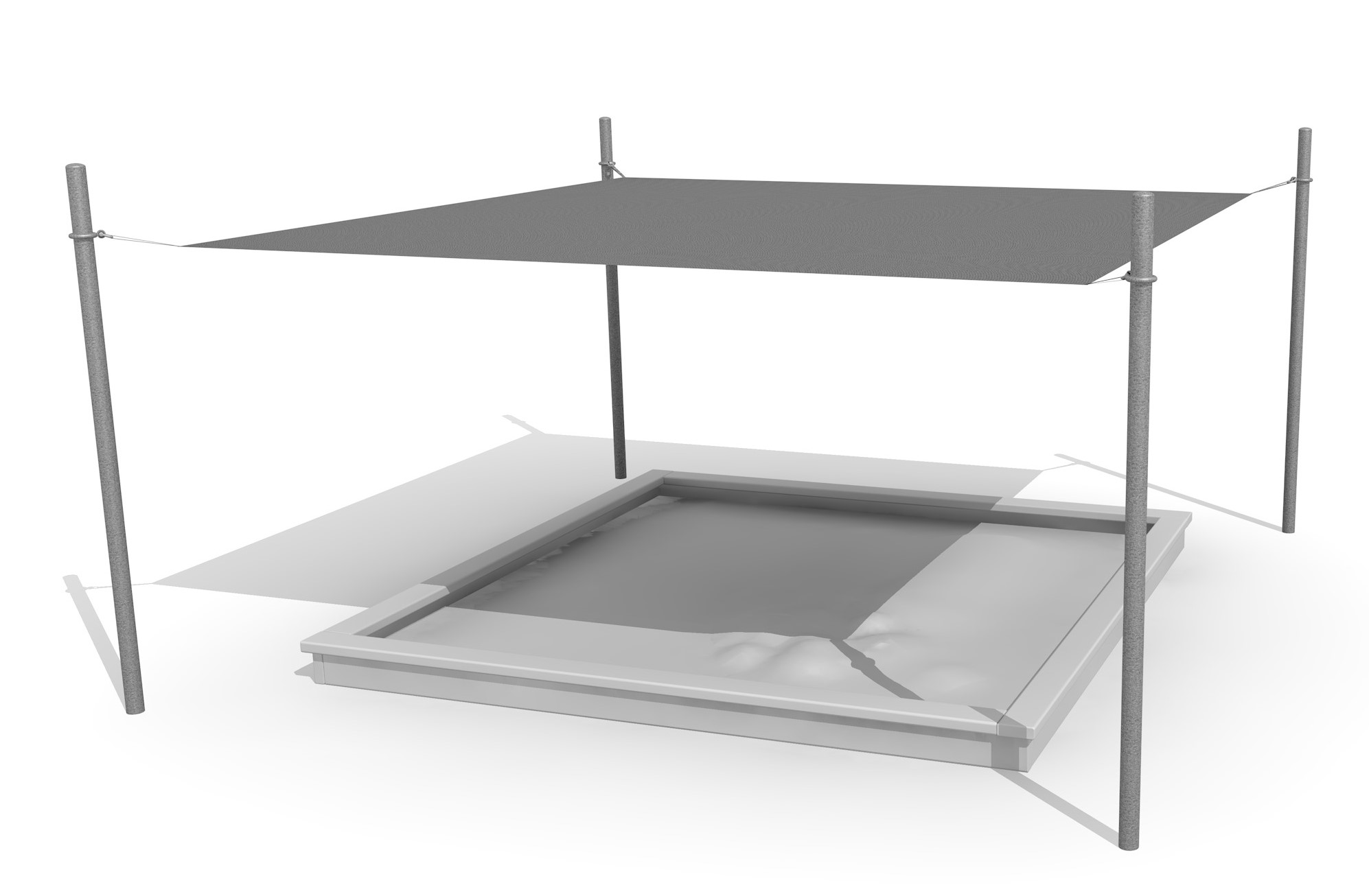 Une solution pratique pour les petits bacs à sable. La bâche peut-être remontée en cas d’utilisation.