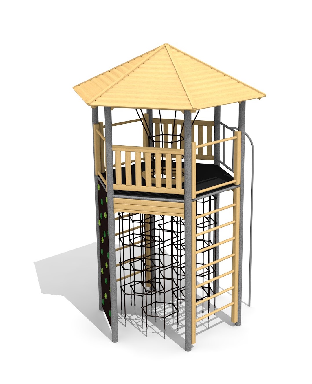 Construction imposante d’une valeur ludique polyvalente. Nos tours hexagonales bimbo ont fait leur preuves. Elles laissent beaucoup d’espace pour jouer et grimper.