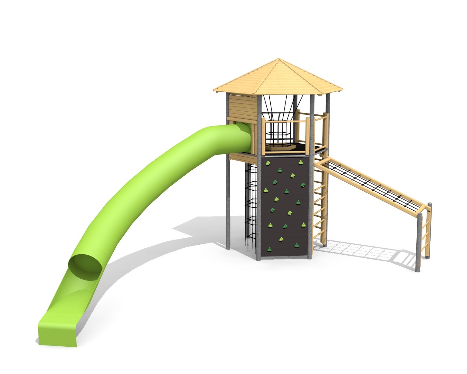 Tour hexagonale XL 011 toboggan virage bois-métal