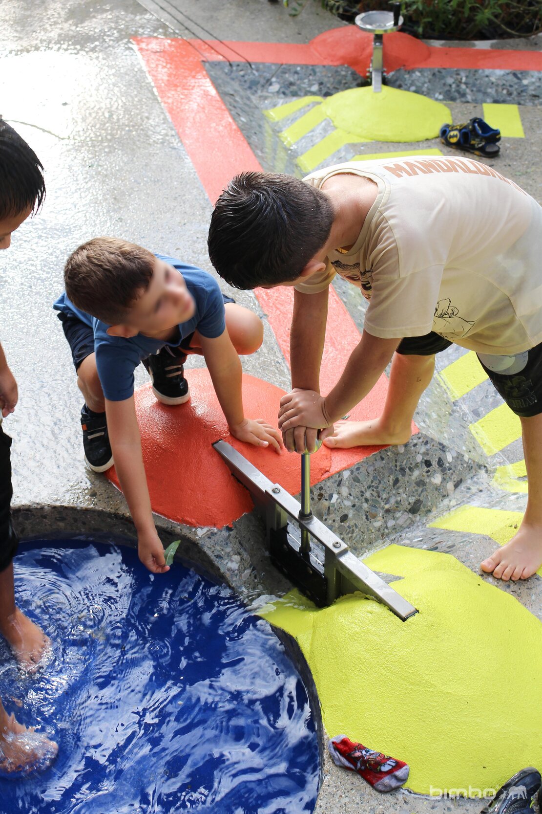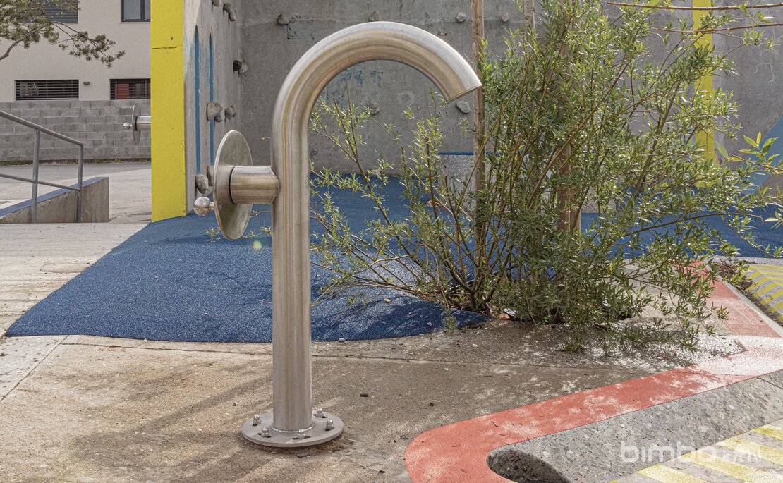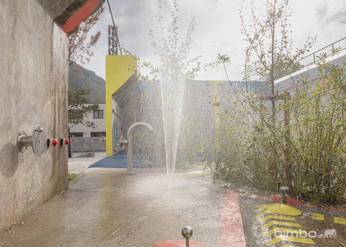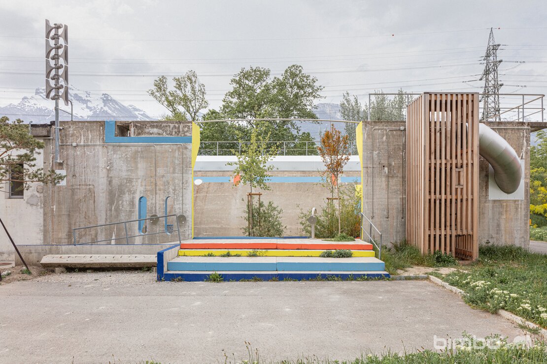 Cette aire de jeux a été réalisée dans l'ancienne station d'épuration sur les rives du Rhône à Aproz. Elle a reçu le LILA Jury Award 2025 pour sa conception imaginative.
