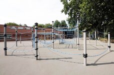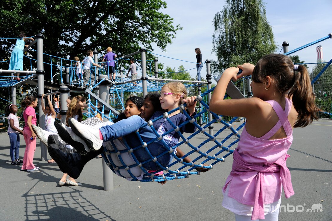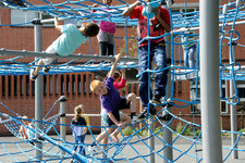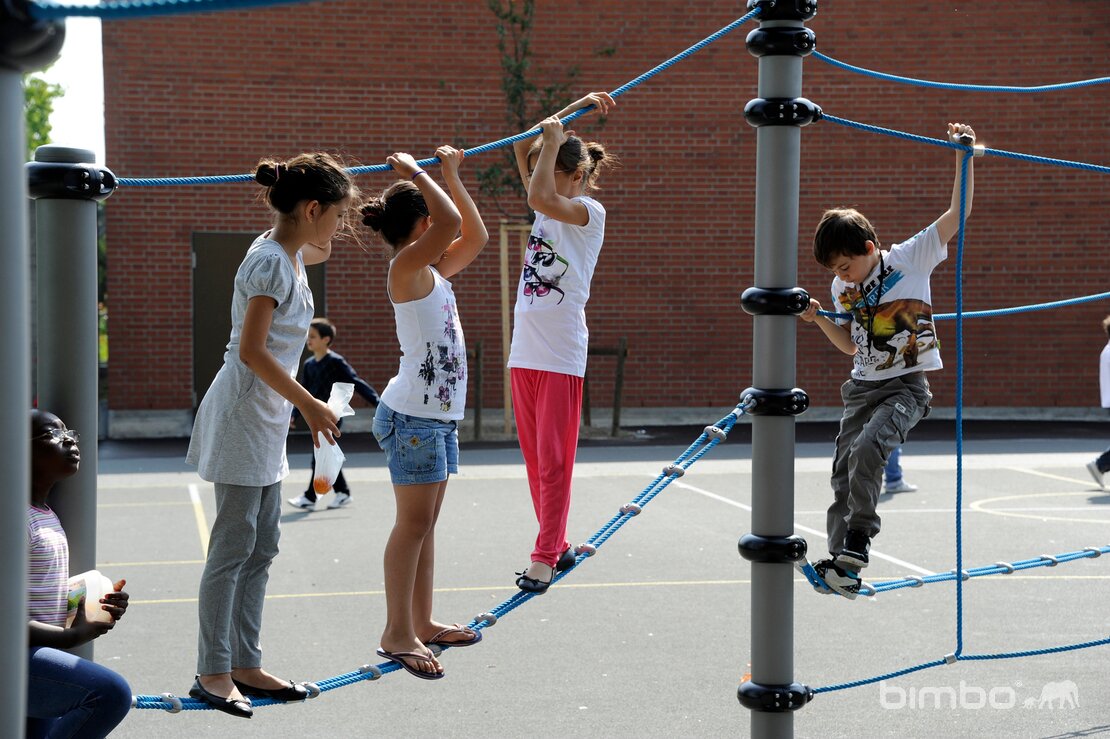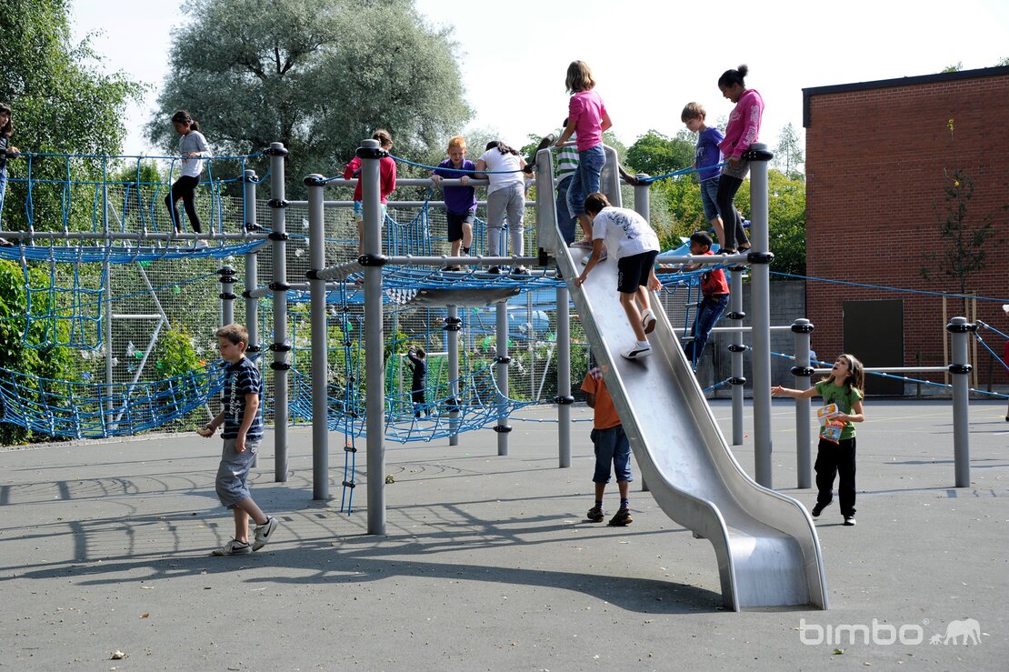 Une vaste structure de balançoires et d'escalades qui peut accueillir beaucoup d'enfants. Ce parc moderne a été réalisé pour une école primaire. Les cordes et les constructions de haute qualité sont très durables et résistent au vandalisme. La conception modulaire des jeux d'escalade Terranos permet une planification individuelle.