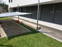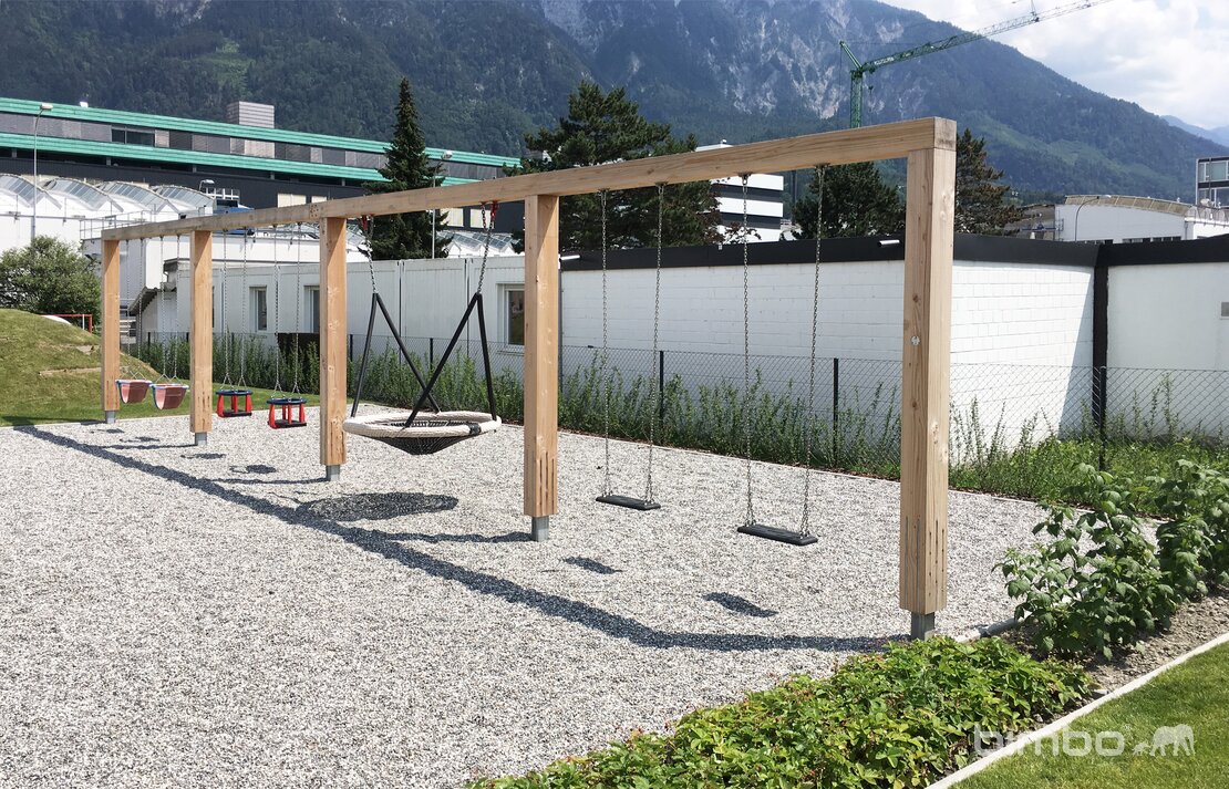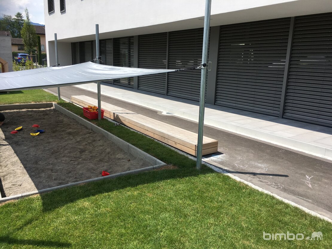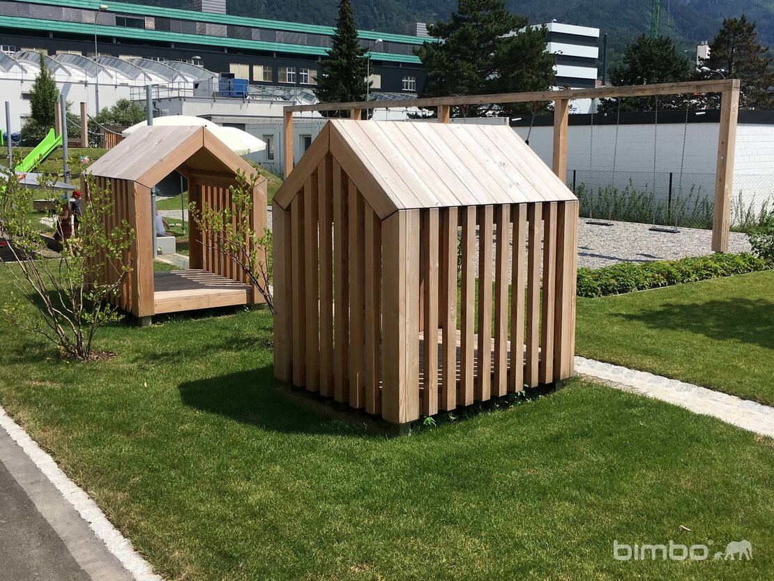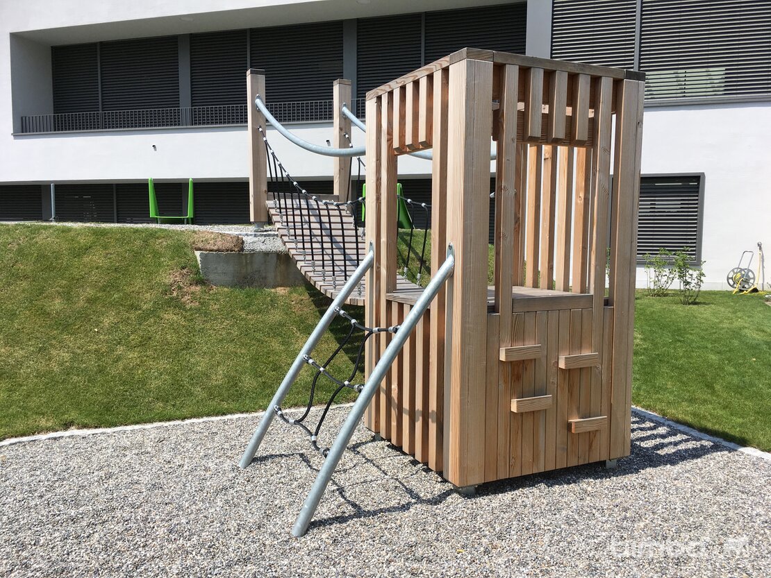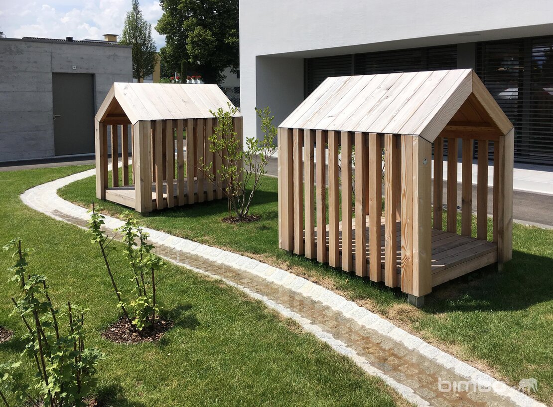 Une création moderne dans une cour intérieure. En bois de douglas indigène et consoles en métal galvanisé.