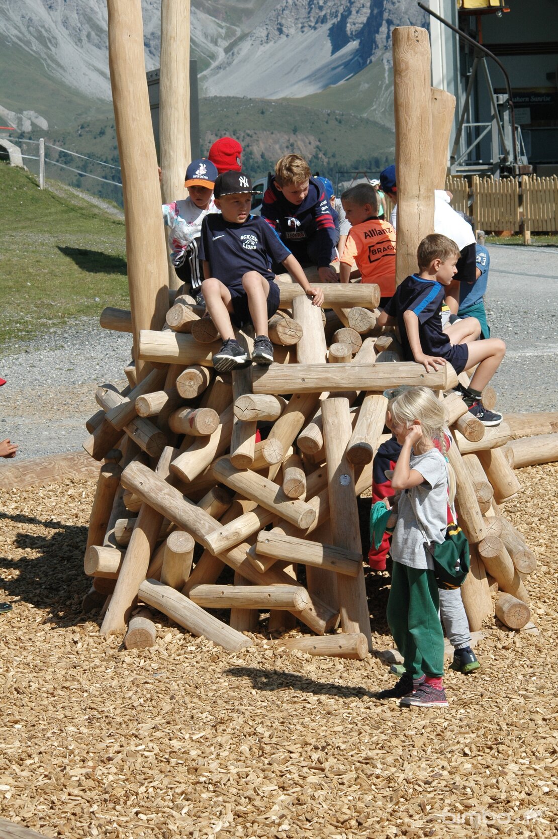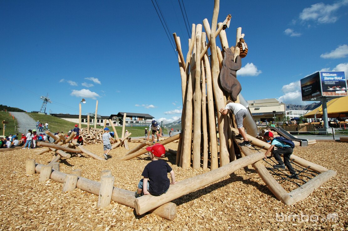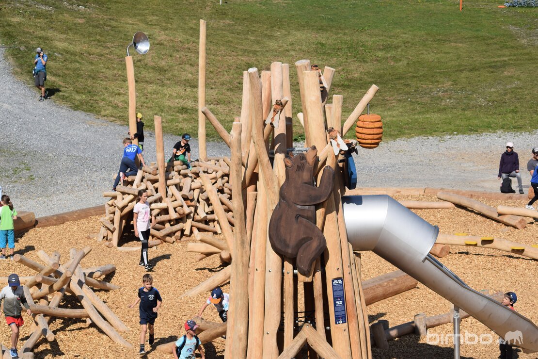 Une expérience proche de la nature dans le parc aux ours à Arosa. De nombreux défis sont à surmonter en plus de la caverne des ours et la tour d'escalade. En bois dur non traité - bimbo nature.
