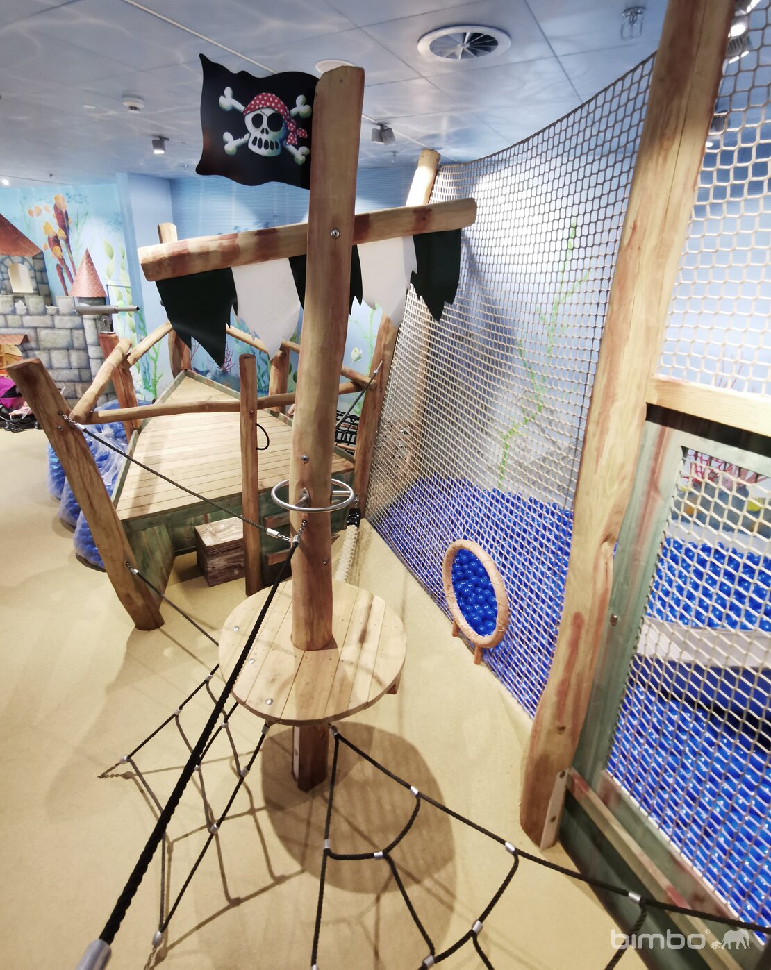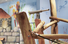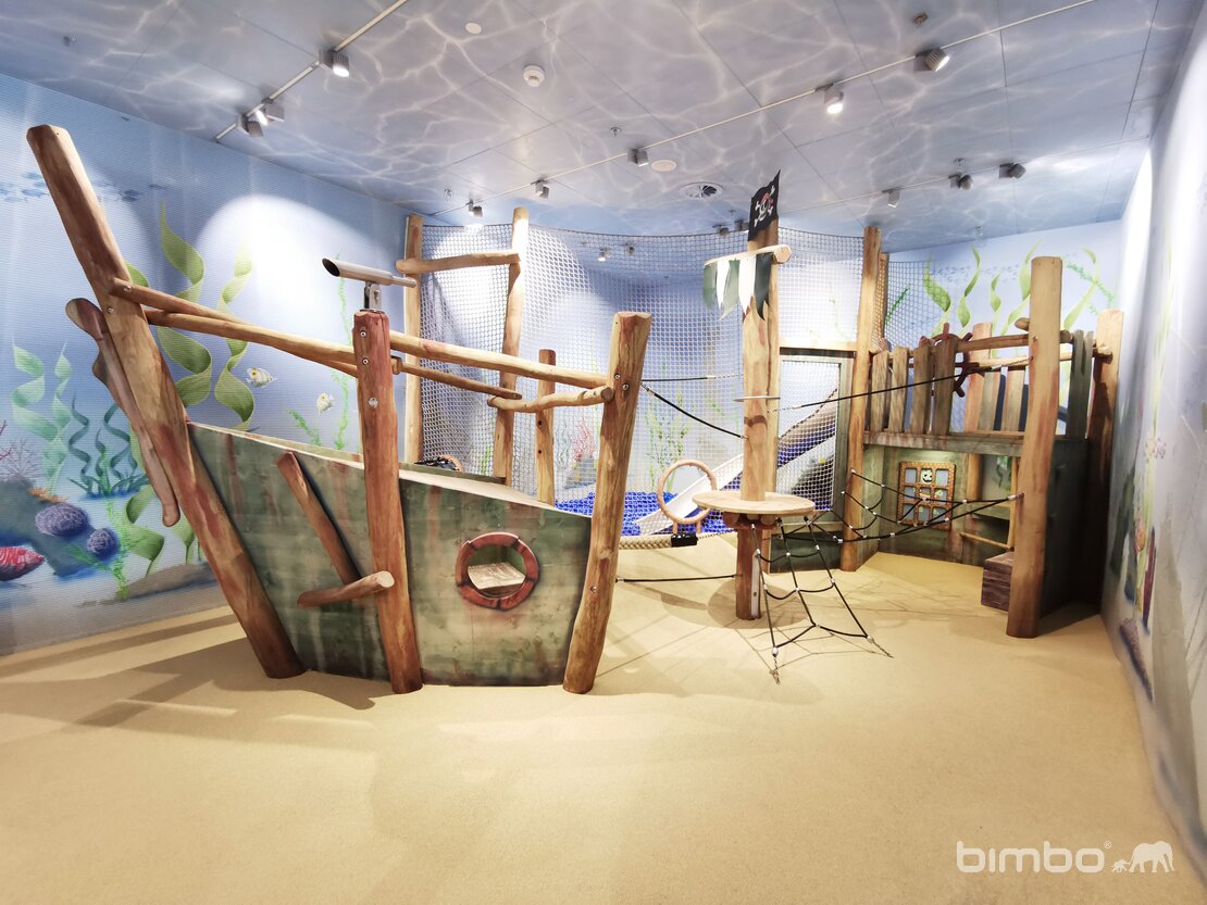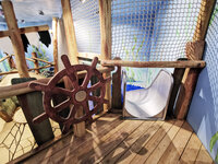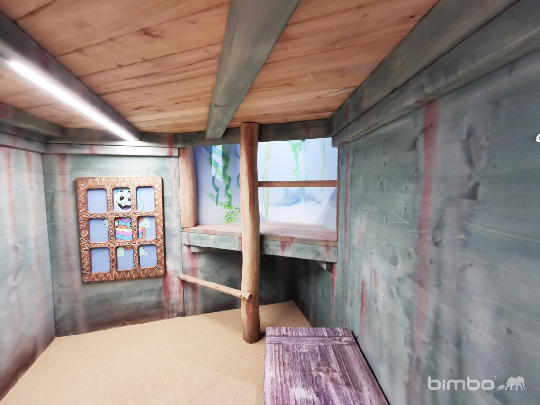 Plein de découvertes à faire dans cet environnement de jeu. Les enfants s'immergent, dans le vrais sens du terme, dans un autre monde. Exécution en bois de robinier bimbo. Surfaces avec peintures pour l'intérieur.